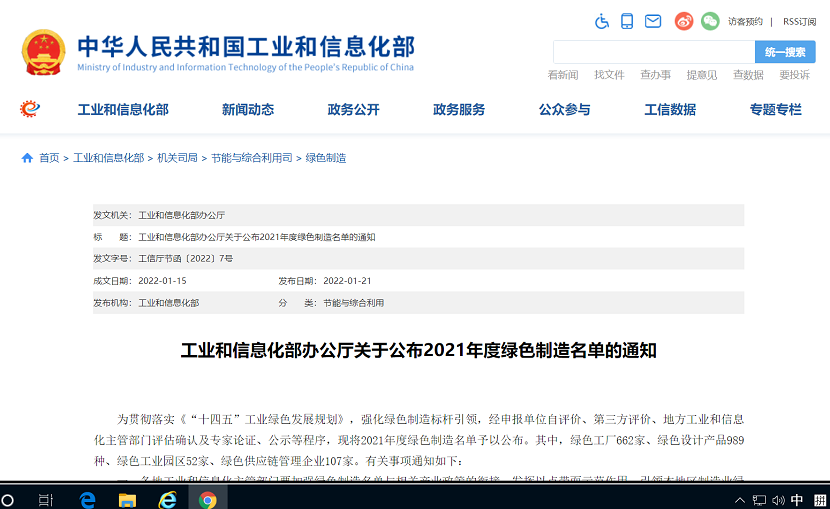 2022年1月21日工信部节能司正式发布2021年度国家级绿色工厂名单,河冶科技股份有限公司作为河北省入选单位榜上有名,成为2021年度662家国家级绿色工厂之一。